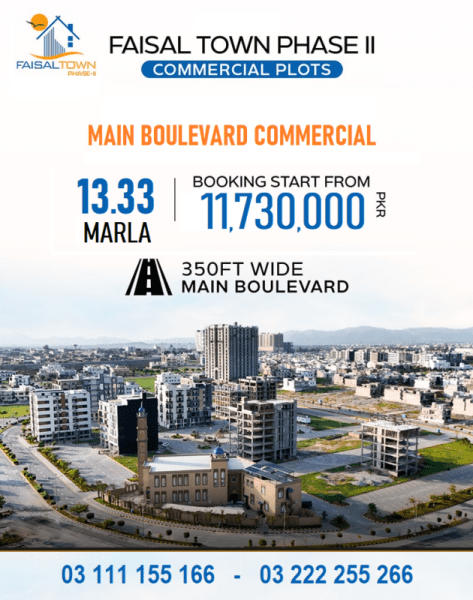 Faisal Town 13.33 Marla Main Boulevard Commercial Plot for