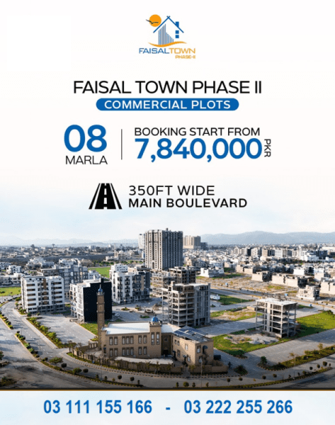Faisal Town 8 Marla Commercial plot for sale, Main boulevard