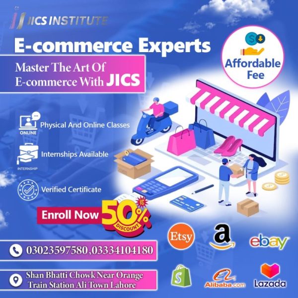 Dreaming of starting a successful online business? JICS Institute offers a comprehensive E-Commerce training program covering top platforms like Amazon, Shopify, Etsy, eBay, and more.
